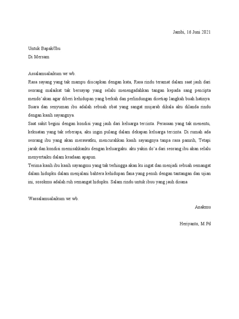 Contoh Surat Hari Ibu 1