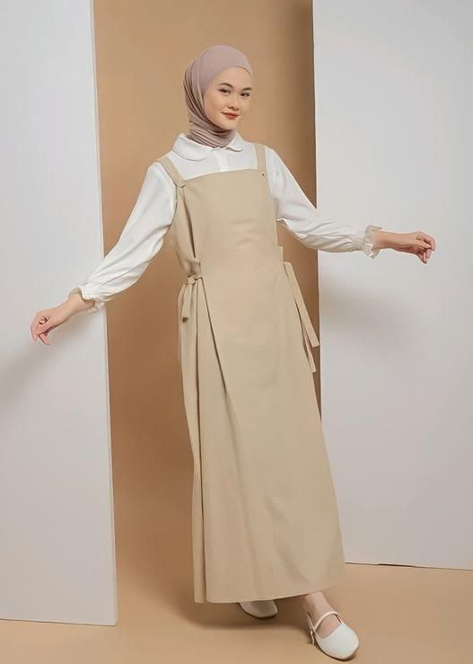 Gaya earth tone selalu sukses bikin tampilan terlihat hangat dan natural. Kamu bisa pilih overall berwarna cokelat muda dengan inner putih atau krem agar tampak lembut. Tambahkan hijab berwarna senada dan tas rajut kecil untuk sentuhan kasual yang manis. -