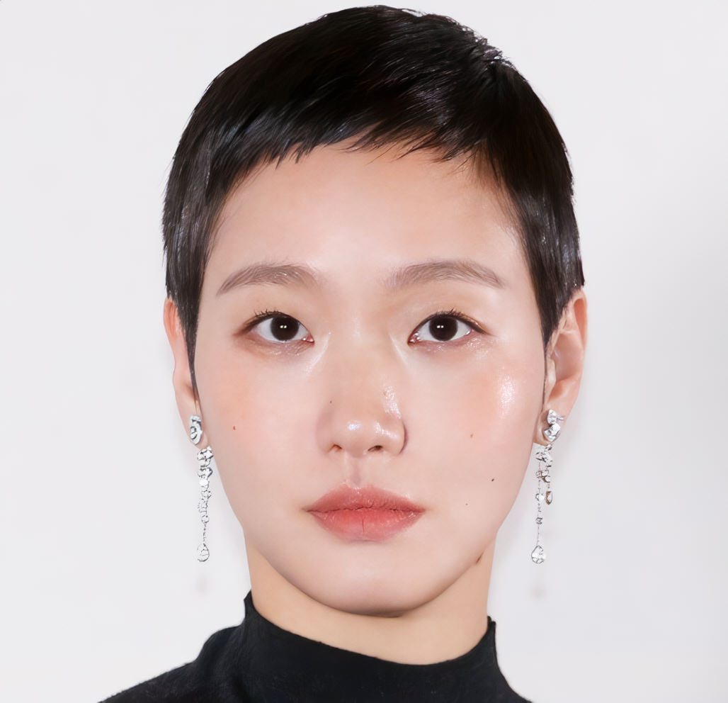 Buat yang ingin menonjolkan aura kuat dan fitur wajah yang tajam, kamu bisa mencoba model rambut pixie cut yang memperlihatkan bagian dahi kamu seperti aktris Lee Jooyoung.