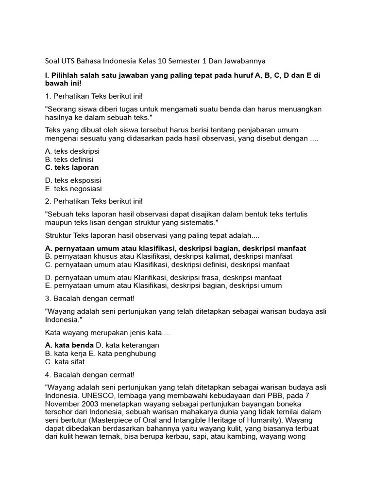Untuk membantu siswa mempersiapkan diri, berikut ini contoh soal dan kunci jawaban PAS Bahasa Indonesia Kelas 10 SMA 2025 sebagai bahan latihan.
