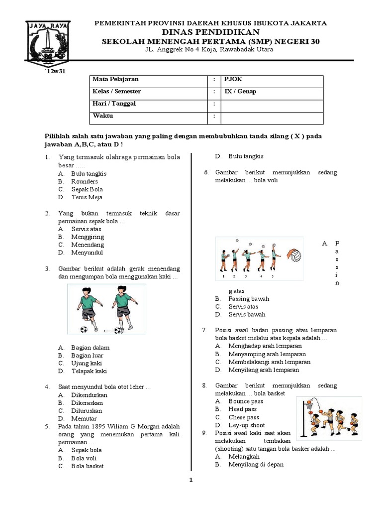 Berikut adalah kumpulan soal dan jawaban mata pelajaran Pendidikan Jasmani, Olahraga, dan Kesehatan (PJOK) untuk siswa kelas 9 SMP/MTs. Soal-soal ini dirangkum sebagai bahan belajar untuk memperdalam pemahaman terhadap berbagai materi yang diajarkan dalam pelajaran PJOK.