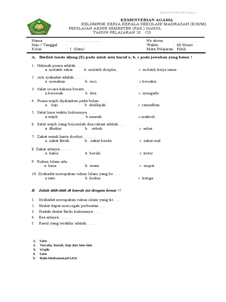 Soal-soal di atas dapat digunakan sebagai bahan latihan untuk memperdalam pemahaman tentang materi Fikih di tingkat SMP. Dengan latihan rutin, siswa akan lebih siap menghadapi ujian PTS atau UTS. Pastikan untuk memahami konsep-konsep dasar dalam Fikih seperti hukum-hukum waris, pinjam meminjam, dan praktik-praktik keagamaan lainnya.