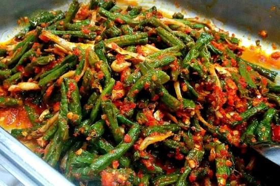Ada juga hidangan Kacang Panjang Balado dengan rasa yang pedas dan gurih. Sambal balado sendiri dibuat dari cabai merah yang ditumis dengan bawang merah, bawang putih, dan bumbu-bumbu lainnya. Kacang panjang balado bisa dijadikan lauk atau pelengkap nasi yang sangat lezat.