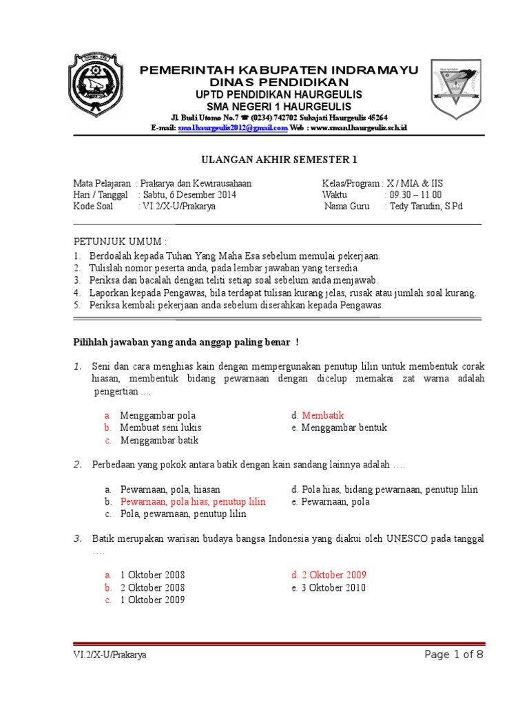 60 Soal dan Jawaban PTS Prakarya Kelas 10 Semester 1 2025