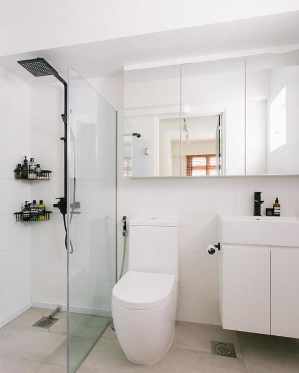 Dinding-dinding dalam kamar mandi juga bisa dimanfaatkan secara efisien. Misalnya, dinding kosong dapat dilengkapi dengan rak-rak penyimpanan atau dinding kaca yang membagi area basah dan kering. Hal ini membuat kamar mandi terlihat lebih luas dan rapi.