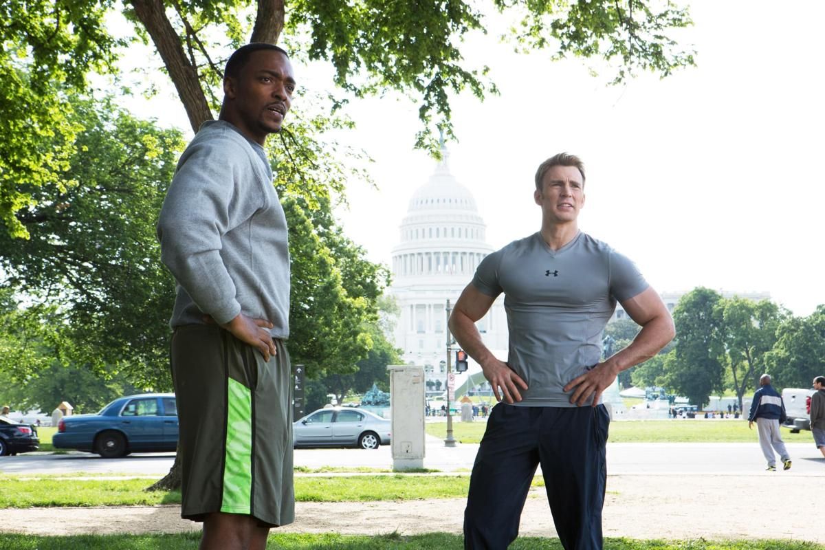 1. Sam Wilson Pertama Kali Bertemu Steve Rogers (Captain America: The Winter Soldier, 2014)