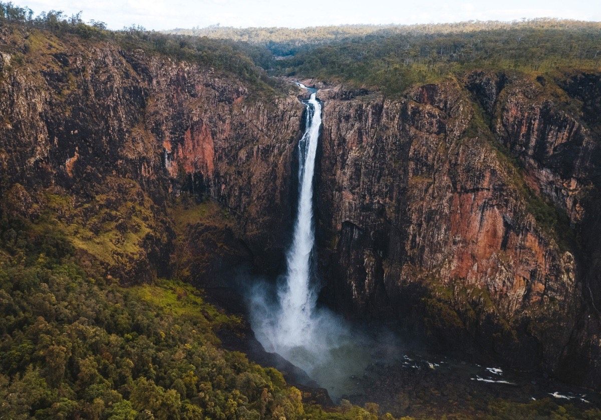 Wallaman Falls di Queensland memegang gelar sebagai air terjun permanen tertinggi di Australia, dengan ketinggian menakjubkan mencapai 268 meter. Terletak di Girringun National Park, Wallaman Falls dikelilingi hutan hujan purba yang masuk kawasan warisan dunia UNESCO. Pengunjung bisa menikmati pemandangan dari berbagai sudut, baik dari atas jurang maupun langsung di bawah air terjun setelah trekking Djyinda Walk. Panorama pelangi kerap muncul di sekitar air terjun, menjadikannya daya tarik fotografi luar biasa yang sulit ditemukan di tempat lain.
