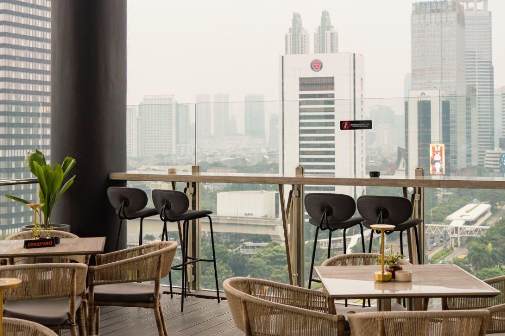 Sky Loft Restaurant menawarkan panorama gedung-gedung Jakarta yang Instagramable. Tempat ini memiliki spot indoor dan outdoor yang nyaman.