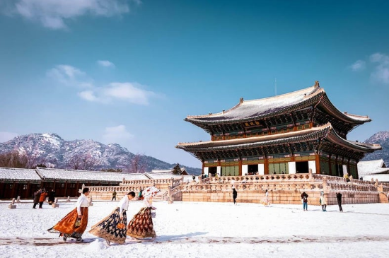 Istana utama Dinasti Joseon ini menawarkan kontras visual yang megah saat arsitektur tradisionalnya (Dancheong) berpadu dengan salju putih. Terletak di 161 Sajik-ro, Jongno-gu, Seoul, istana ini dapat diakses dengan mudah melalui Subway Line 3 (Stasiun Gyeongbokgung Exit 5). Istana ini sering menjadi latar drama sejarah (Sageuk) dan juga tampil di drama modern seperti Goblin.