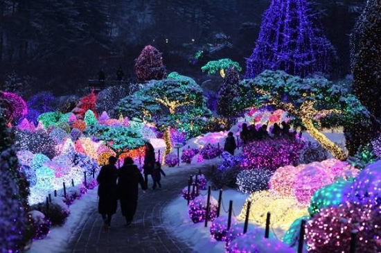 Taman botani yang terletak di 432 Sumogwon-ro, Gapyeong-gun, Gyeonggi-do ini terkenal dengan Festival Lampu (Lighting Festival) yang diadakan selama musim dingin. Jutaan lampu LED yang menyelimuti taman menciptakan pemandangan magis yang sangat Instagrammable, terutama saat salju turun.