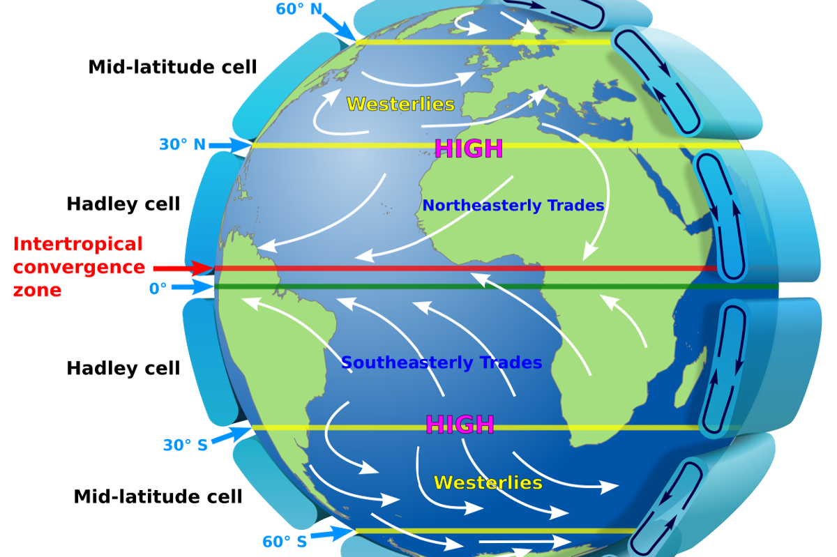 Sekitar 20 persen permukaan Bumi saat ini berupa gurun. Banyak dari gurun ini terletak dalam garis lintang 30 hingga 50 derajat. Di khatulistiwa, sinar matahari langsung menyinari planet ini dan menghangatkan udara, yang kemudian naik. Lalu, udara mulai mendingin dan tidak dapat lagi menahan banyak air. Inilah proses terjadinya curah hujan. Namun, udara yang kini jauh lebih hangat dan kering terus mengalami pergerakan. Udara bersirkulasi melalui pola cuaca yang dikenal sebagai sel Hadley dan mulai bergerak menuju wilayah gurun ke utara atau selatan. Ketika mencapai garis lintang tersebut, udara mulai tenggelam kembali, dan menghangat. Udara hangat ini menyerap air di sepanjang perjalanannya, membuat gurun di bawahnya semakin kering.