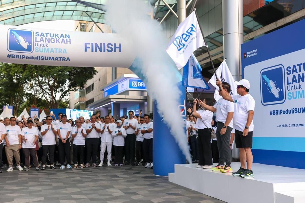 Kegiatan “Satukan Langkah untuk Sumatra” dilaksanakan di Kantor Pusat BRI, Jakarta, pada Minggu (21/12/2025), dan dihadiri oleh Komisaris Utama BRI Kartika Wirjoatmodjo, Direktur Utama BRI Hery Gunardi bersama jajaran Dewan Komisaris dan Direksi BRI Group.