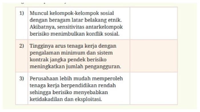 - Berilah tanda (√) untuk menunjukkan risiko dampak globalisasi bagi kehidupan masyarakat lokal!