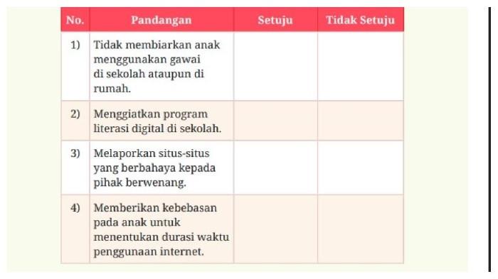 - Identifikasilah respons yang sesuai untuk menangani kasus pada infografik. Berikan tanda (√) pada kolom Setuju/Tidak Setuju!