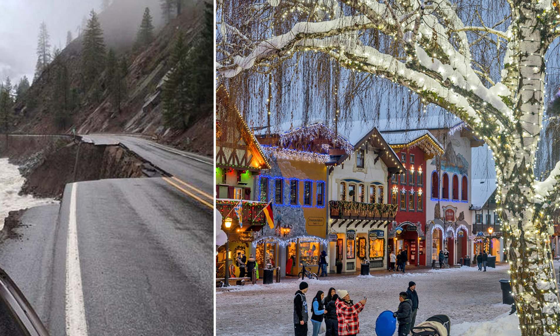 Tetapi desa yang hanya memiliki 2.700 penduduk ini kesulitan mempertahankan semangat perayaan setelah badai mengerikan menghancurkan bagian jalan raya 2 sepanjang 49 mil antara Leavenworth dan Skykomish. Satu jalur lengkap runtuh ke aliran air deras di bawahnya pada sebagian jalan tersebut.