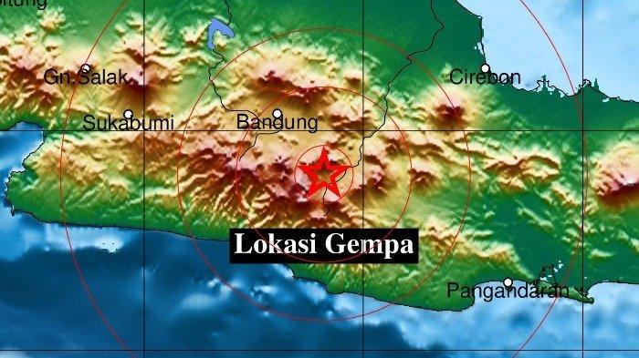 Namun titik pusat gempa yang ditunjukkan BMKG di peta, tampak seperti berada di selatan Bandung.