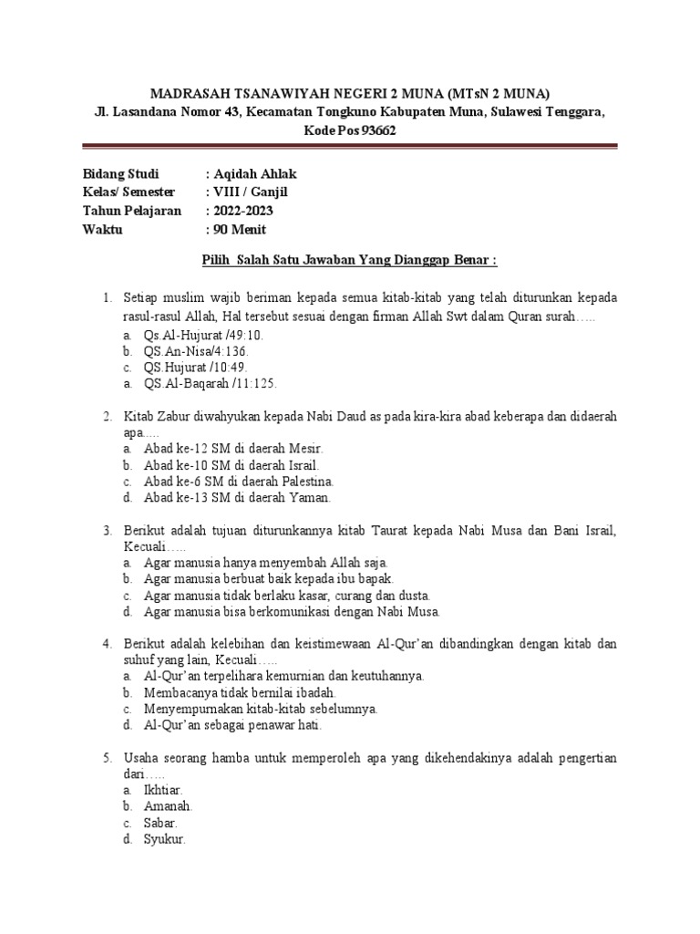 10 Contoh Soal AKG Akidah Akhlak Paling Sulit dan Pembahasannya