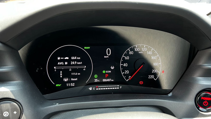 Tol Cipali yang panjang dan lurus seringkali jadi ujian konsumsi BBM sebuah mobil. Banyak kendaraan cenderung boros karena kecepatan konstan yang tinggi. Efisiensi tinggi konsumsi bahan bakar Honda HR-V Hybrid. Namun beda dengan indikator bensin Honda HR-V Hybrid. Digeber di kisaran 90 km/jam dan telah menempuh jarak di atas 100 kilometer belum ada gelagat berkurang, bar bensin masih penuh, seolah-olah mobil ini bisa menempuh lebih jauh dari prediksi awal.