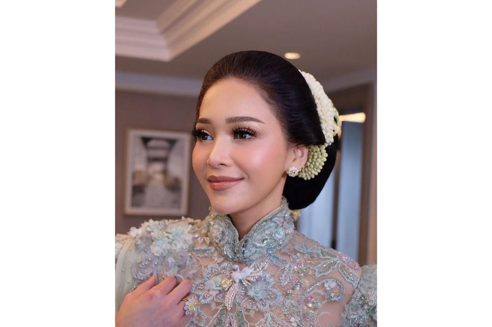 Untuk mempercantik rambutnya, Maia menghiasi rambutnya dengan roncean melati di sisi samping sanggul. Hal ini sendiri membuat penampilannya semakin terlihat anggun dan berkarisma. Dengan hasil