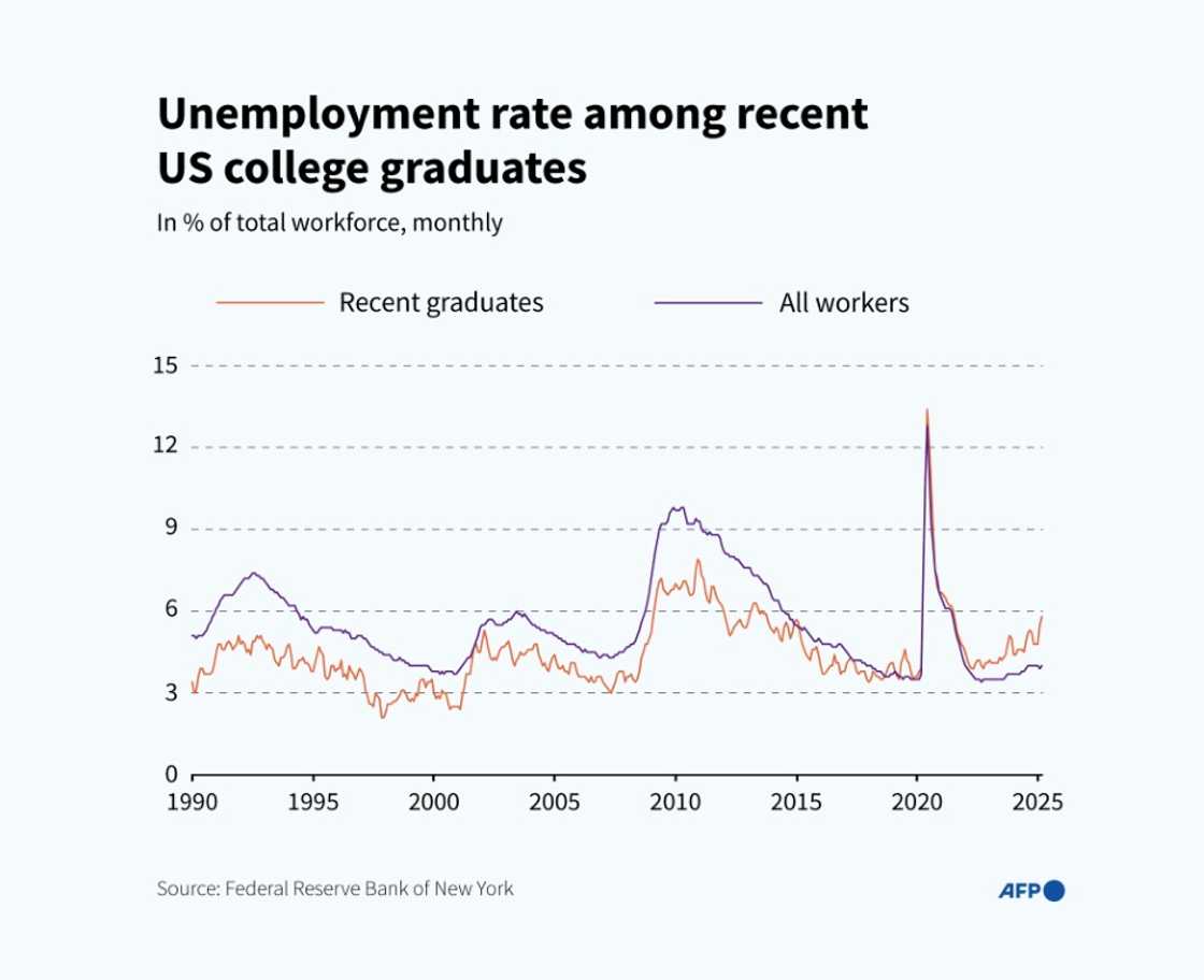 Sementara itu, secara keseluruhan tingkat pengangguran di AS telah stabil pada kisaran sekitar 3,5 hingga 4 persen pasca-pandemi, tingkat pengangguran untuk lulusan perguruan tinggi baru justru menunjukkan tren yang meningkat.