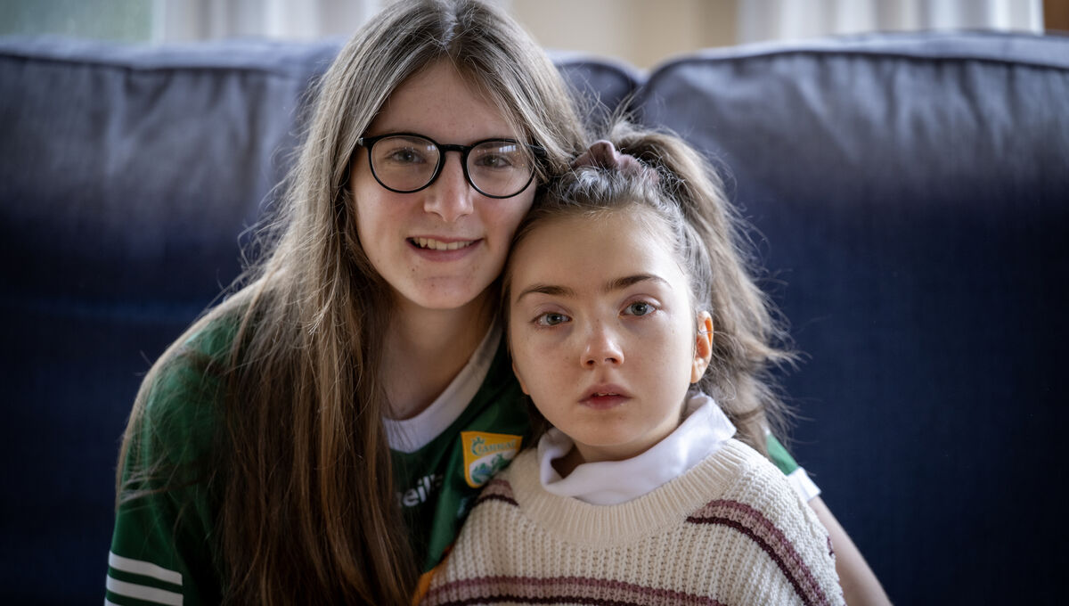 Lily Falvey sangat dekat dengan saudara perempuannya Hannah, yang menderita sindrom Rett, epilepsi, dan tantangan lainnya. Gambar: Domnick Walsh © Eye Focus LTD