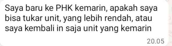 Dua hari kemudian, tiba-tiba masuk chat seperti di atas dari si nasabah. Selanjutnya, pegawai yang menangani kontrak si nasabah diminta untuk negosiasi terkait solusi dan apakah pengembalian barang kredit bisa dilakukan.