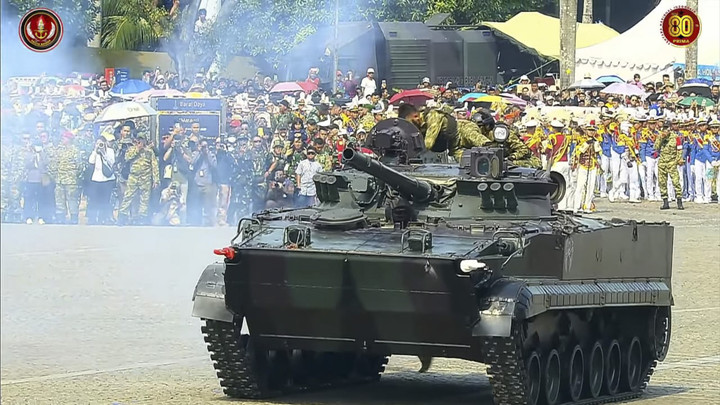 Upacara HUT ke-80 TNI di Monas turut dimeriahkan oleh deretan kendaraan tempur TNI dari tiga matra. Sebanyak 1.047 alutsista ikut ambil bagian dalam parade dan demonstrasi. Beberapa kendaraan seperti Medium Tank Harimau, Ranpur Badak, Rantis Anoa, Rantis Komodo, hingga Ranops Maung MV3 Tangguh tampil dalam rangkaian defile.