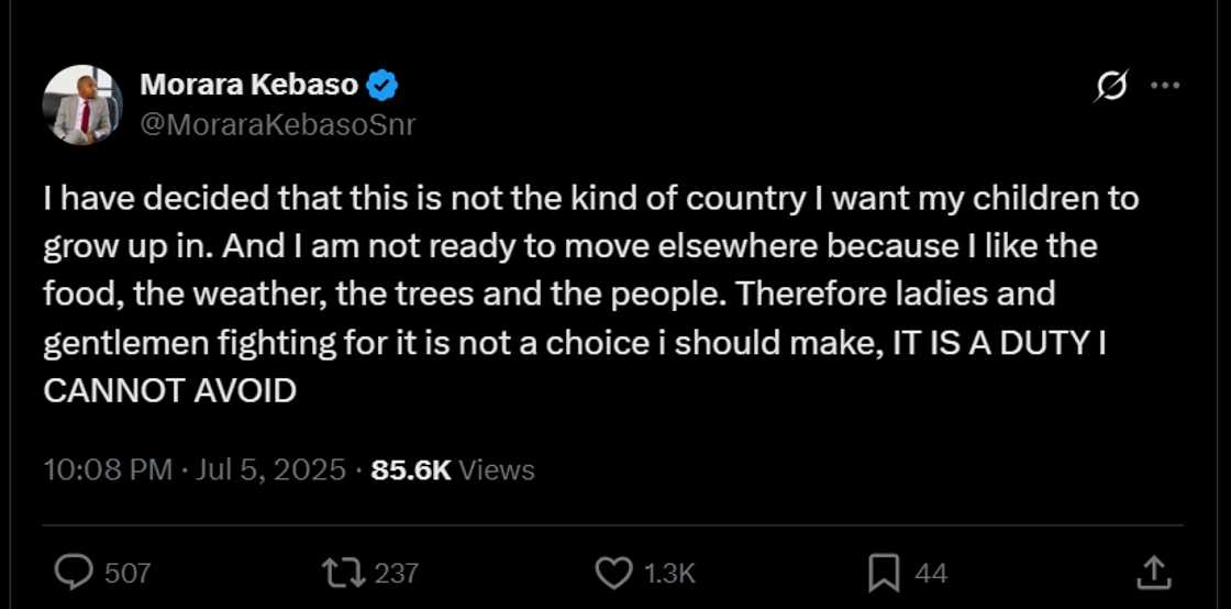 Morara Kebaso mendesak kaum muda untuk memimpin, bukan mengikuti