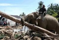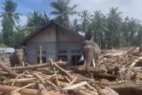 Tak cuma manusia, viral gajah juga bantu bersihkan kayu usai banjir di Pidie Jaya Aceh, netizen haru