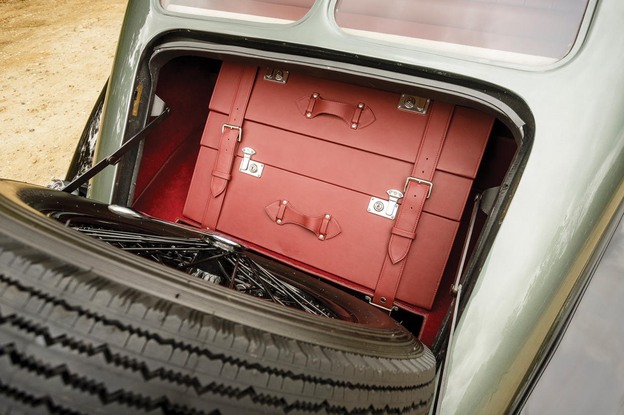 Pemandangan dari luar bagus untuk mobil sedan pra-perang yang tertutup, dengan dua persegi besar kaca untuk jendela belakang dan pemandangan yang mengesankan sepanjang kap mesin yang megah.