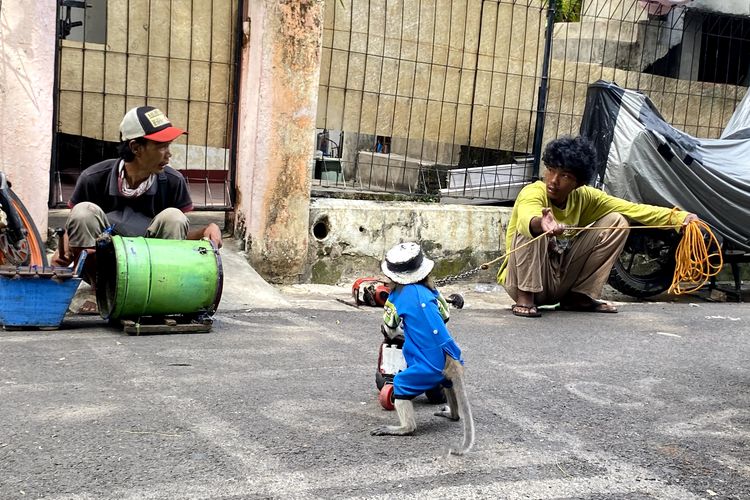 JAKARTA, sebuah gang sempit di kawasan Matraman, Jakarta Timur, menjadi tempat yang penuh dengan kehidupan dan tradisi. Di bawah terik matahari siang, dua pengamen topeng monyet, Deni dan Raffi, menjalankan atraksi mereka.