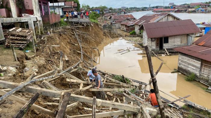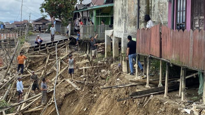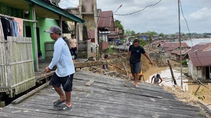 Longsoran Bantaran Sungai Kahayan Rusak Jembatan Kayu di Gang Getah Rami