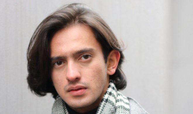 Ardito tampak mengenakan kemeja hitam yang dibalut jaket bermotif loreng biru, celana bahan hitam, serta topi putih.