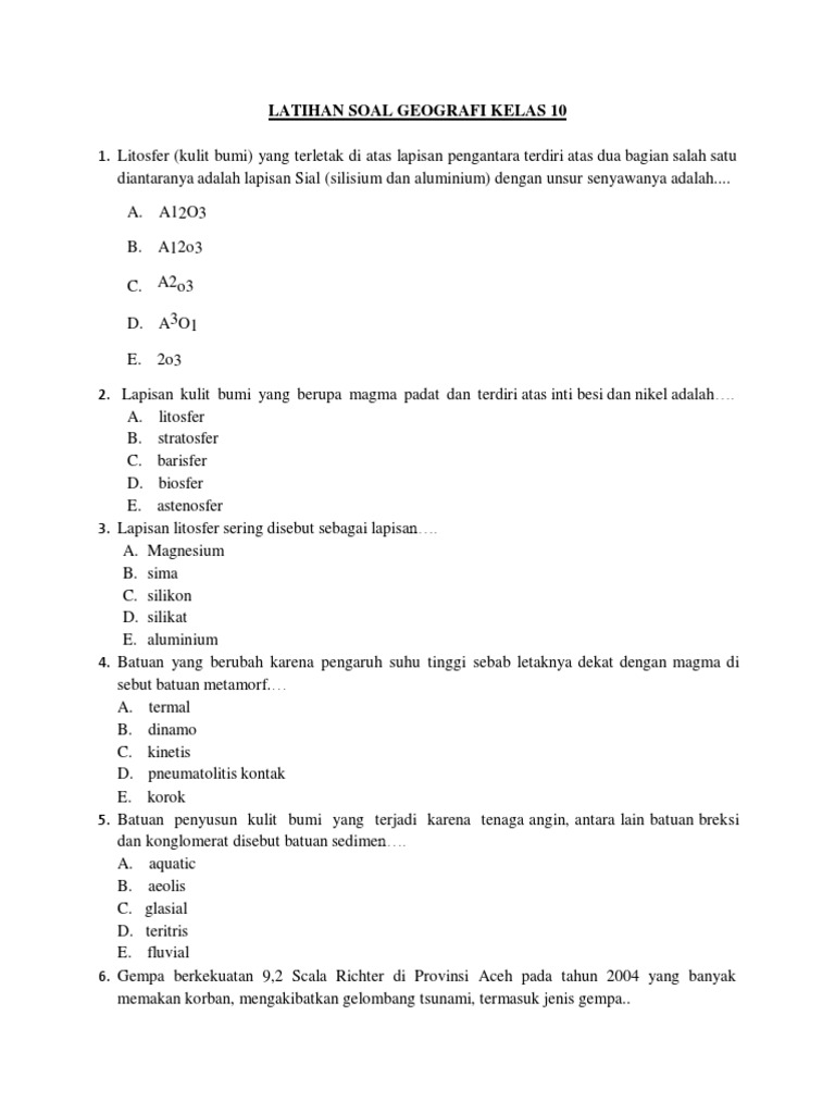 Penilaian Akhir Tahun (PAT) atau Sumatif Akhir Tahun (SAT) merupakan momen penting bagi siswa untuk mengevaluasi pemahaman mereka terhadap materi yang telah dipelajari selama satu semester. Salah satu cara efektif dalam mempersiapkan PAT adalah dengan berlatih mengerjakan soal-soal ujian. Artikel ini menyajikan 50 contoh soal pilihan ganda mata pelajaran Geografi untuk siswa Kelas 10 SMA Semester 2 Tahun Ajaran 2025/2026, lengkap dengan kunci jawaban.