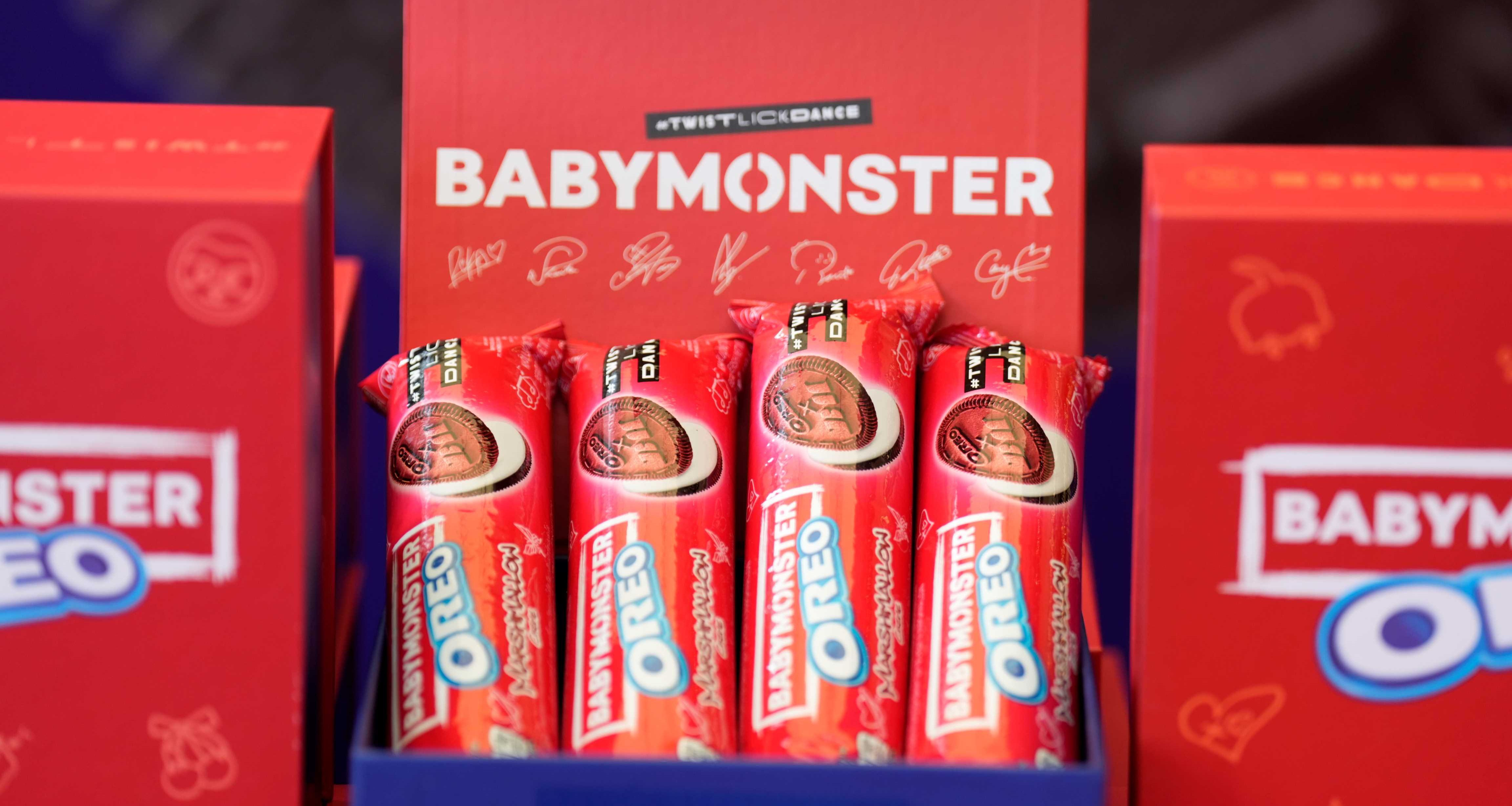 Kolaborasi ini memperkenalkan OREO x BABYMONSTER edisi terbatas, BABYMONSTER Red Sandwich Cookies dengan rasa marshmallow yang terinspirasi dari tren dessert asal Korea. Setiap keping biskuitnya didesain langsung oleh para member BABYMONSTER sebagai bentuk ekspresi kreatif dan dedikasi mereka untuk para pecinta K-Pop.