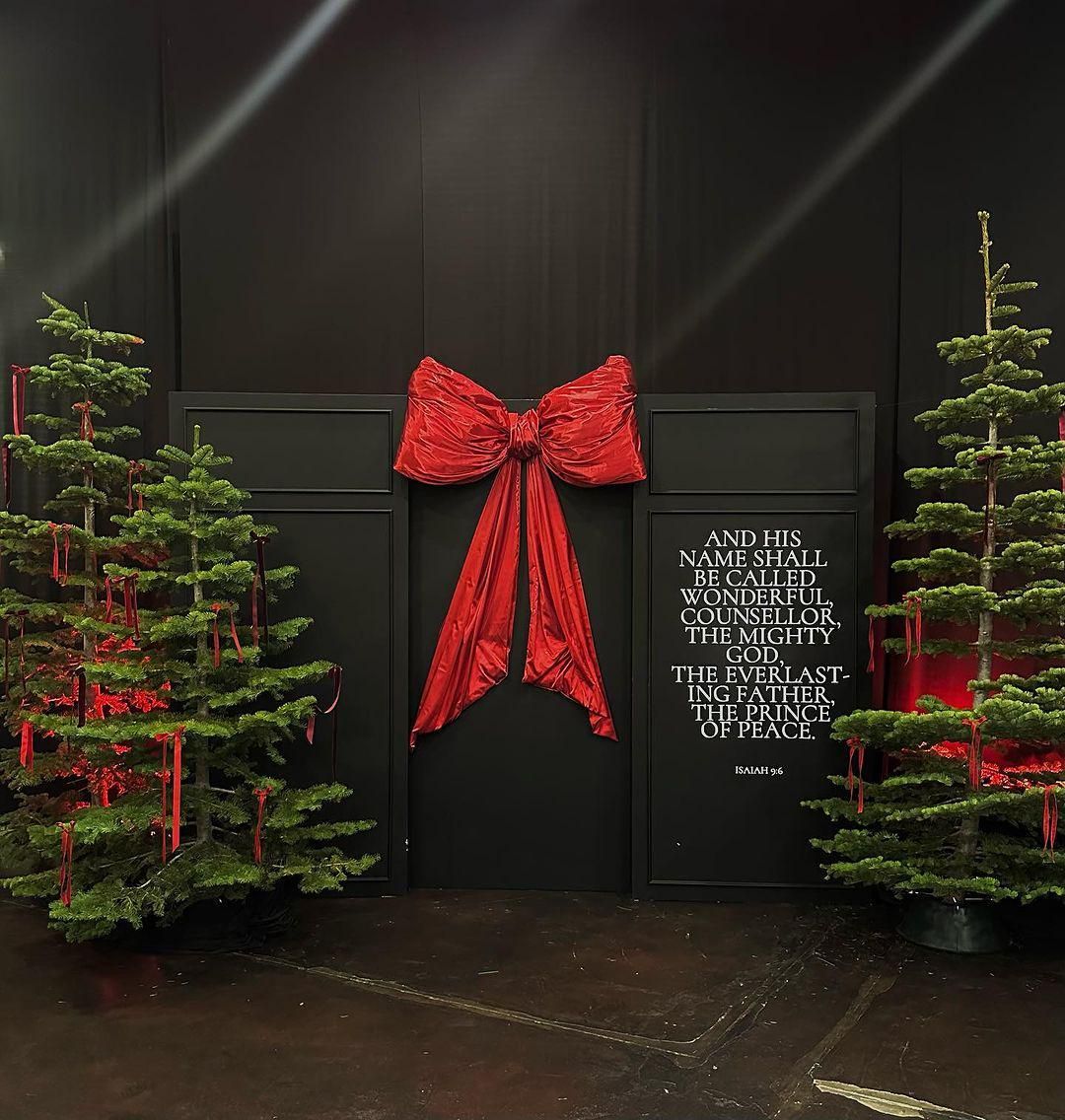 Pita merah termasuk dekorasi natal gereja sederhana yang sangat mudah diterapkan. Tampilan pita memberi kesan meriah tanpa membuat ruangan menjadi penuh. Kamu bisa memilih warna merah solid agar tampilannya tetap elegan.