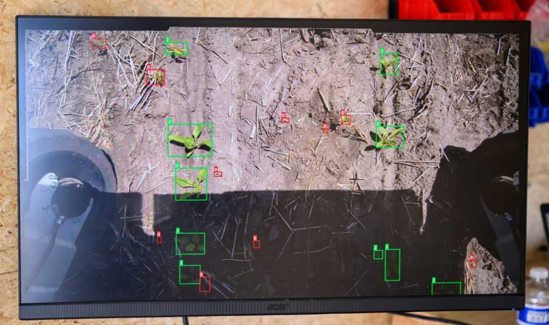 Sistem kecerdasan buatan (AI) robot menerima data dari kamera yang terpasang, memungkinkannya untuk mengikuti barisan tanaman dan mengidentifikasi gulma.