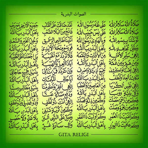Berikut adalah teks lengkap Sholawat Badar dalam versi pendek dan panjang, termasuk huruf Arab, Latin, dan terjemahan: