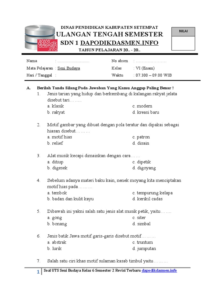 Soal Seni Rupa Kelas 6