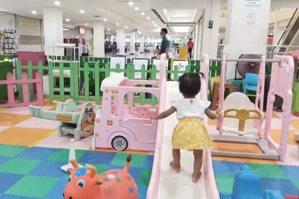 Playground ini menyediakan puluhan jenis alat permainan yang bermanfaat bagi tumbuh kembang anak, seperti mainan masak-masakan dan balok susun.