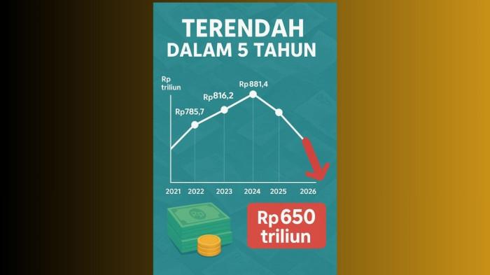 Penurunan tersebut merupakan bagian dari kebijakan pemerintah pusat dalam menyesuaikan anggaran secara menyeluruh. Dalam RAPBN 2026, total anggaran TKD ditetapkan sebesar Rp650 triliun. Angka ini lebih rendah dibandingkan proyeksi TKD 2025 yang mencapai Rp864,1 triliun. Penurunan ini dilakukan sebagai upaya penyesuaian terhadap kondisi fiskal negara yang dinilai perlu dilakukan agar tetap seimbang.